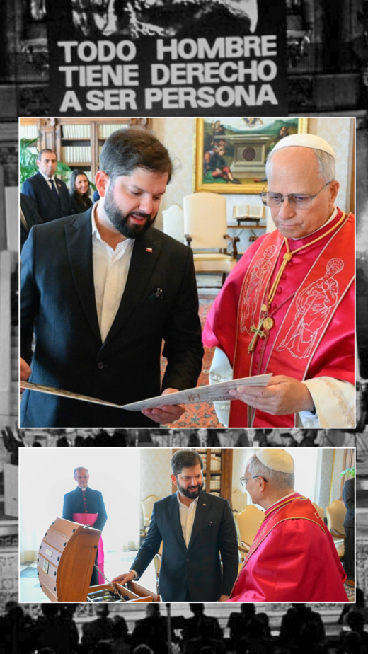 Durante su visita oficial al Vaticano, el Presidente Gabriel Boric entregó al Papa León XIV un vinilo de “La Cantata por los Derechos Humanos” y el libro “Vicaría de la Solidaridad: Una experiencia sin fronteras” de Gilberto C. Aranda Bustamante. Ambos obsequios evocan la labor de la Vicaría de la Solidaridad, organismo de la Iglesia chilena que, durante la dictadura, defendió a víctimas de persecución política y documentó violaciones a los derechos humanos.